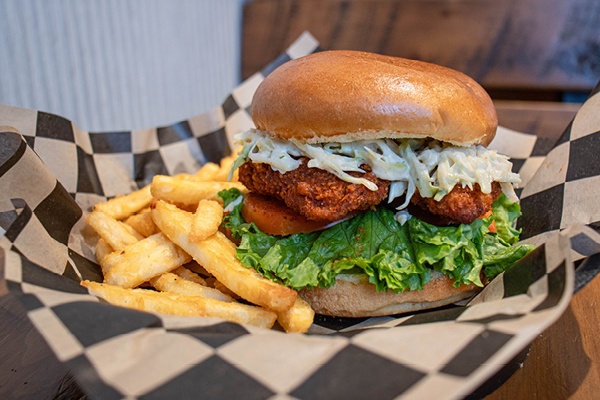 Enjoy a Crispy Cajun Fish Sandwich with lettuce, tomato, remoulade coleslaw on a brioche bun. $15